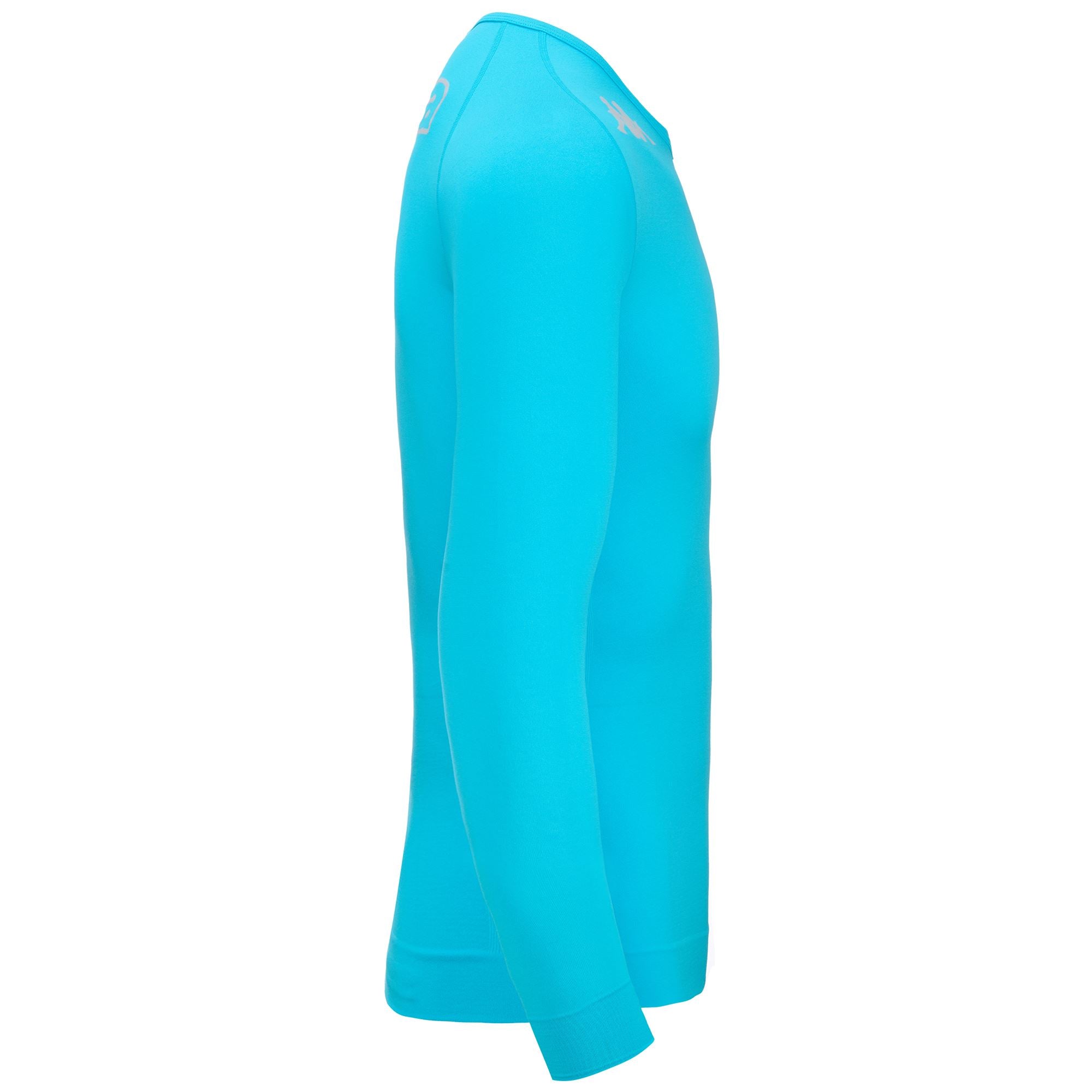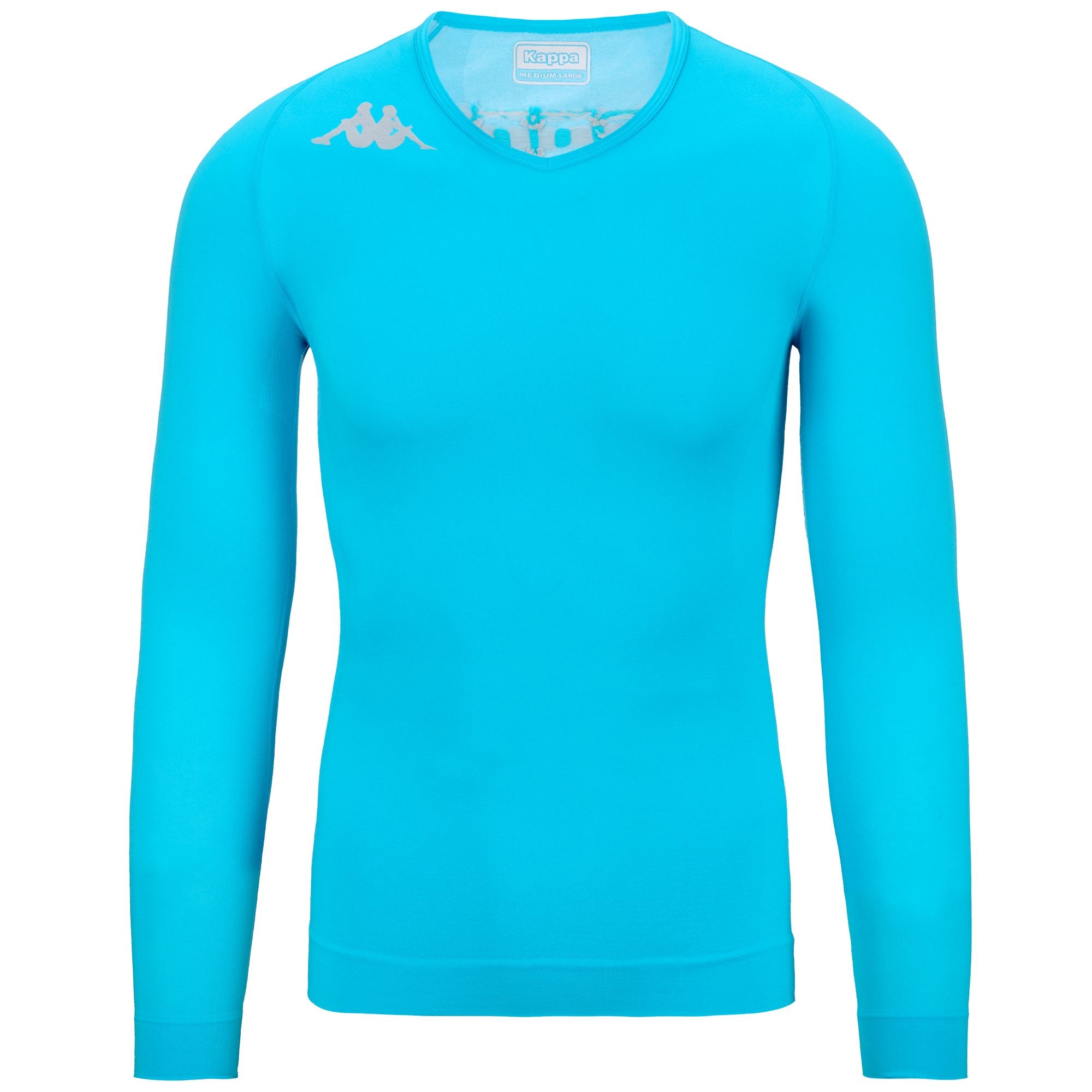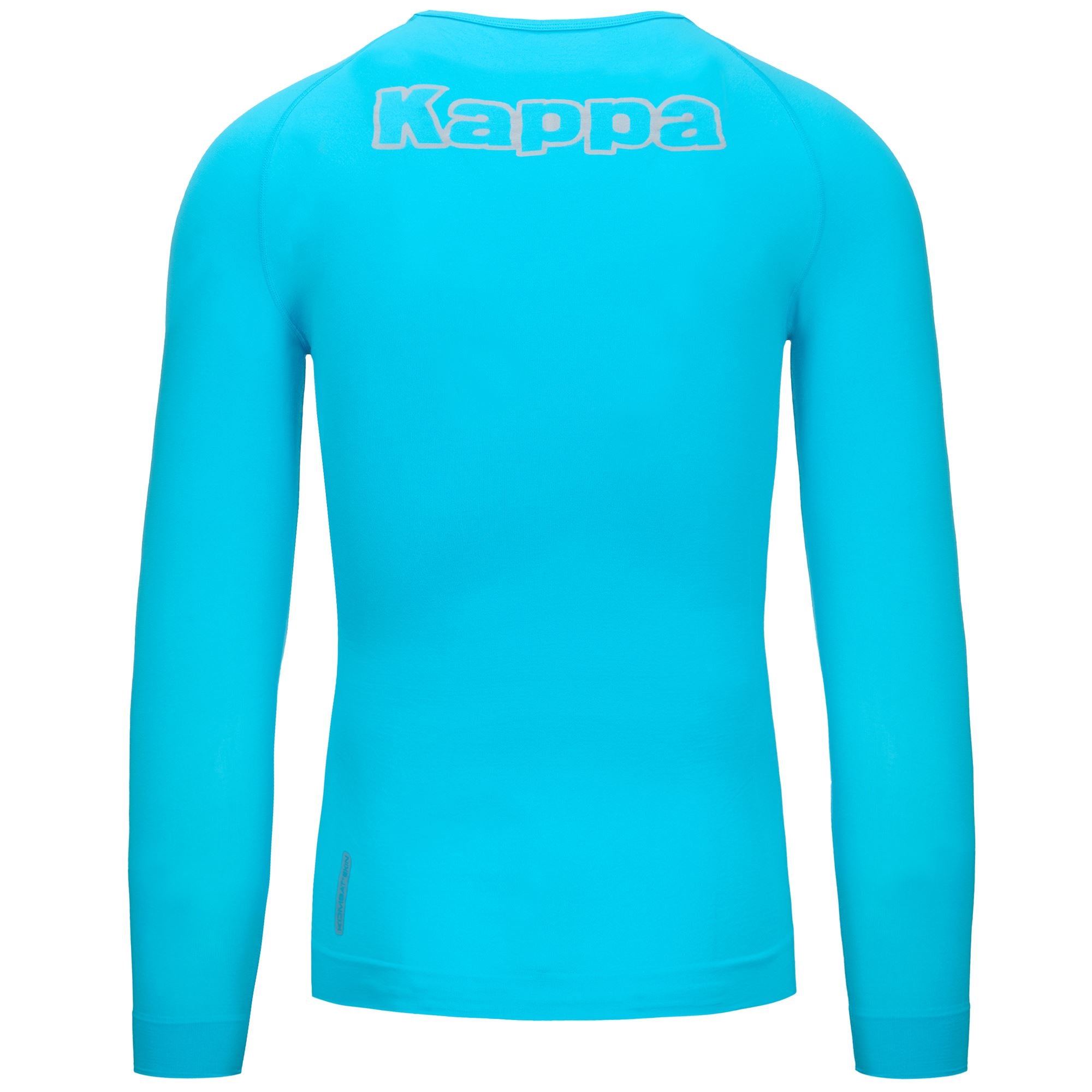 SPORT.KOMBAT???.Underwear shirt in polyammide elastic fiber with BACTERIAL. BREATHEABILITY and HYDRO-WAY PROTECTION technology. partecipating to Textile and Health Project promoted by the Italian Ministry of Health.SKIN FIT.Seamless technology.Long sleeves and V neck.Omini logo on chest and Kappa lettering on back in jacquard without seams.