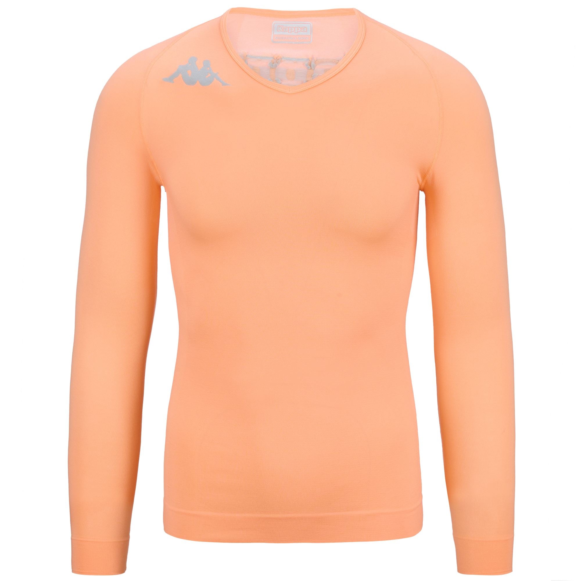 SPORT.KOMBAT???.Underwear shirt in polyammide elastic fiber with BACTERIAL. BREATHEABILITY and HYDRO-WAY PROTECTION technology. partecipating to Textile and Health Project promoted by the Italian Ministry of Health.SKIN FIT.Seamless technology.Long sleeves and V neck.Omini logo on chest and Kappa lettering on back in jacquard without seams.