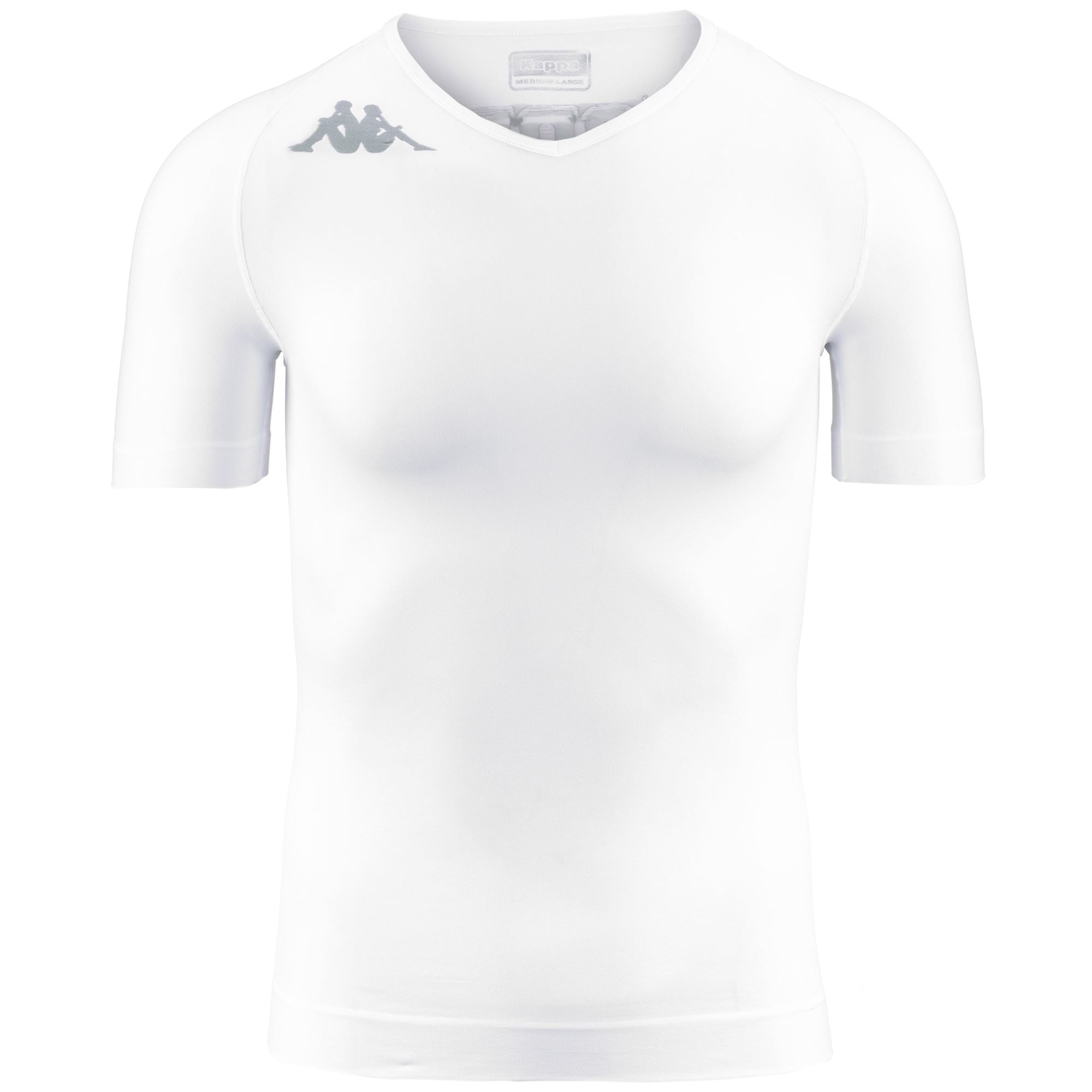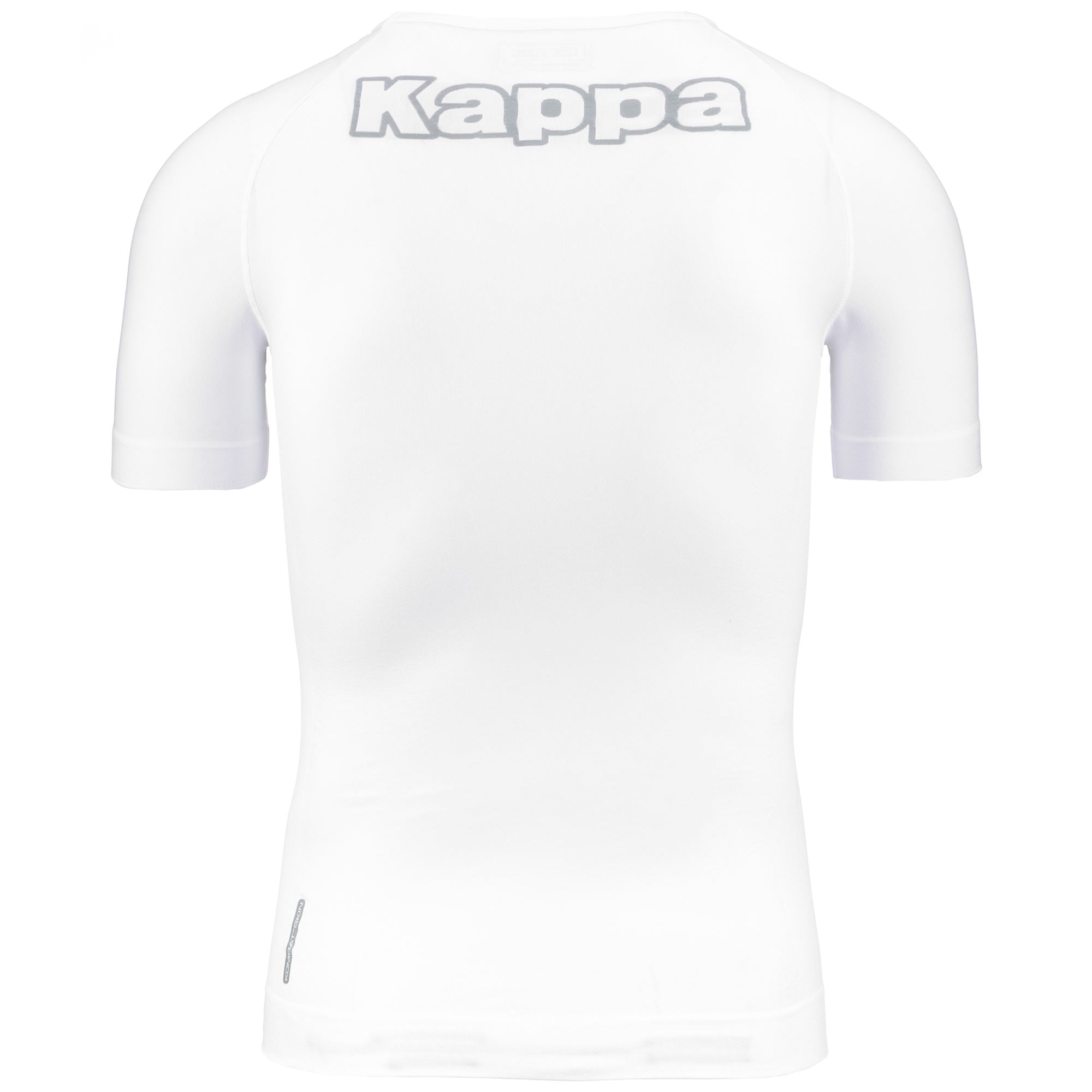 SPORT.KOMBAT???.Underwear shirt in polyammide elastic fiber with BACTERIAL. BREATHEABILITY and HYDRO-WAY PROTECTION technology. partecipating to Textile and Health Project promoted by the Italian Ministry of Health.SKIN FIT.Seamless technology.Short sleeves and V neck.Omini logo on chest and Kappa lettering on back in jacquard without seams.