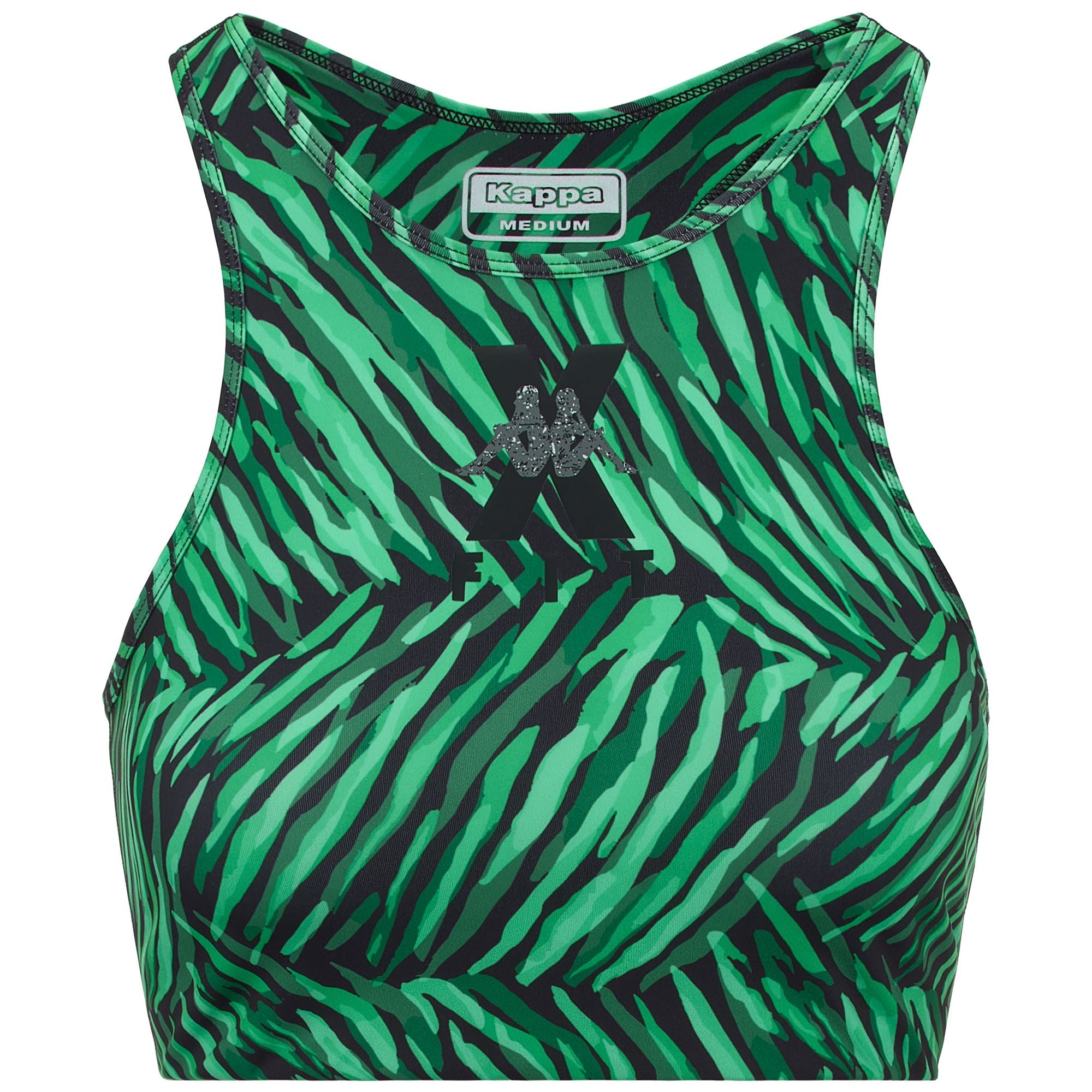 SPORT.Woman top in stretch jersey fabric.SKIN FIT. Round neckline on front.All over print.Top without cups.Graphic Omini printed on front. transfer logo Pro Kombat System.