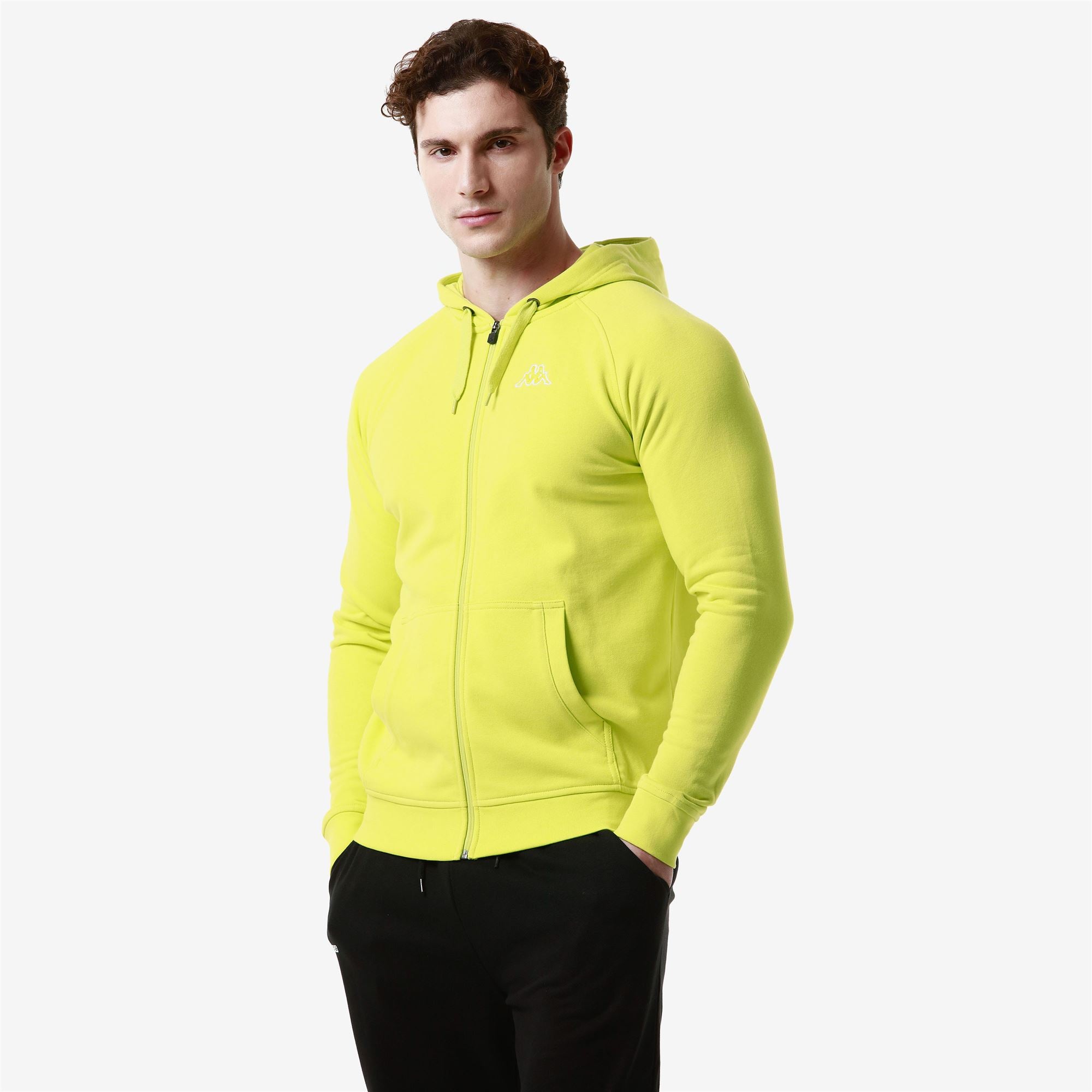 LOGO.Man fleece in french terry fabric.SLIM FIT.Hood. full zip. long sleeves raglan. ribbed borders. kangaroo pocket.Omini logo embroidered on chest in contrast color.