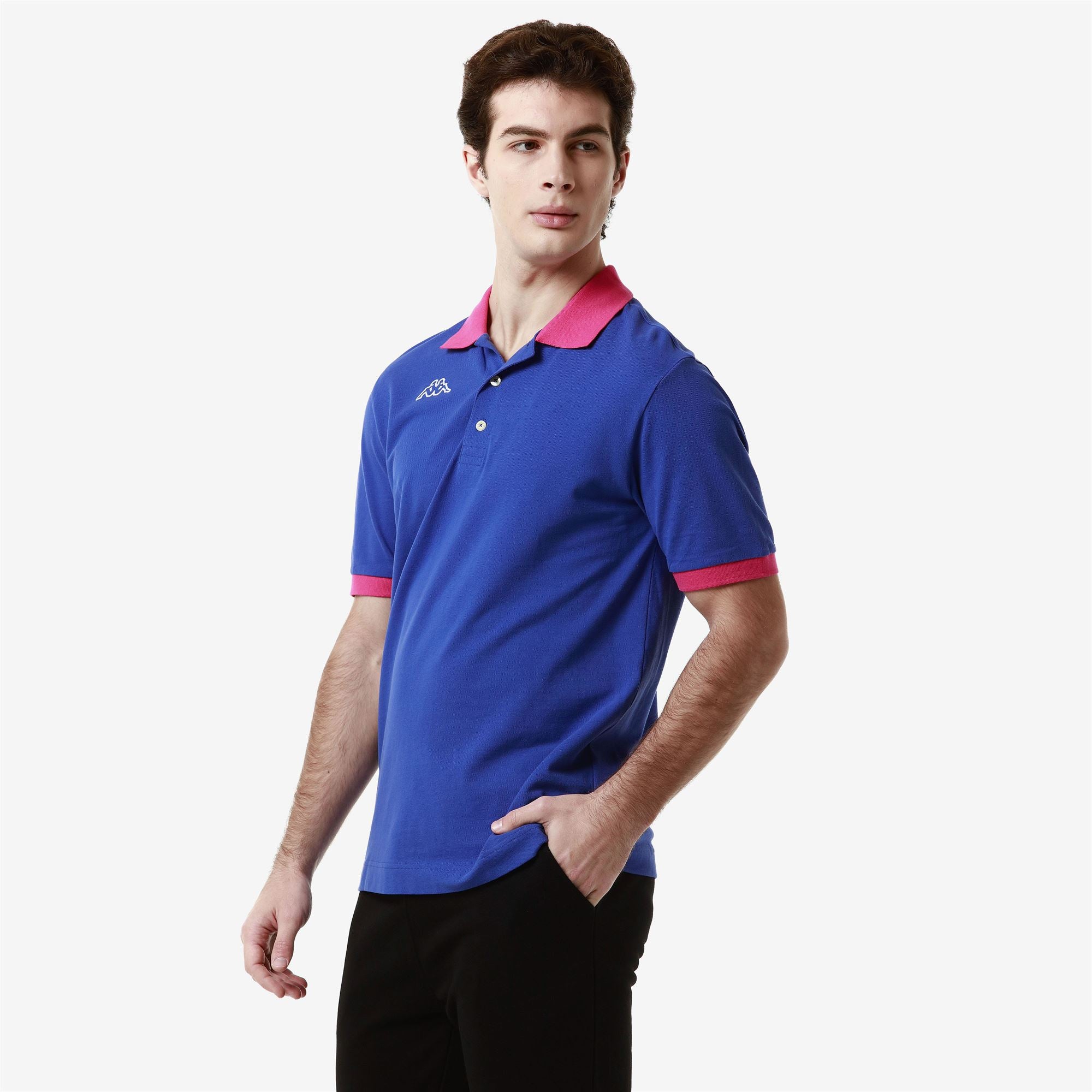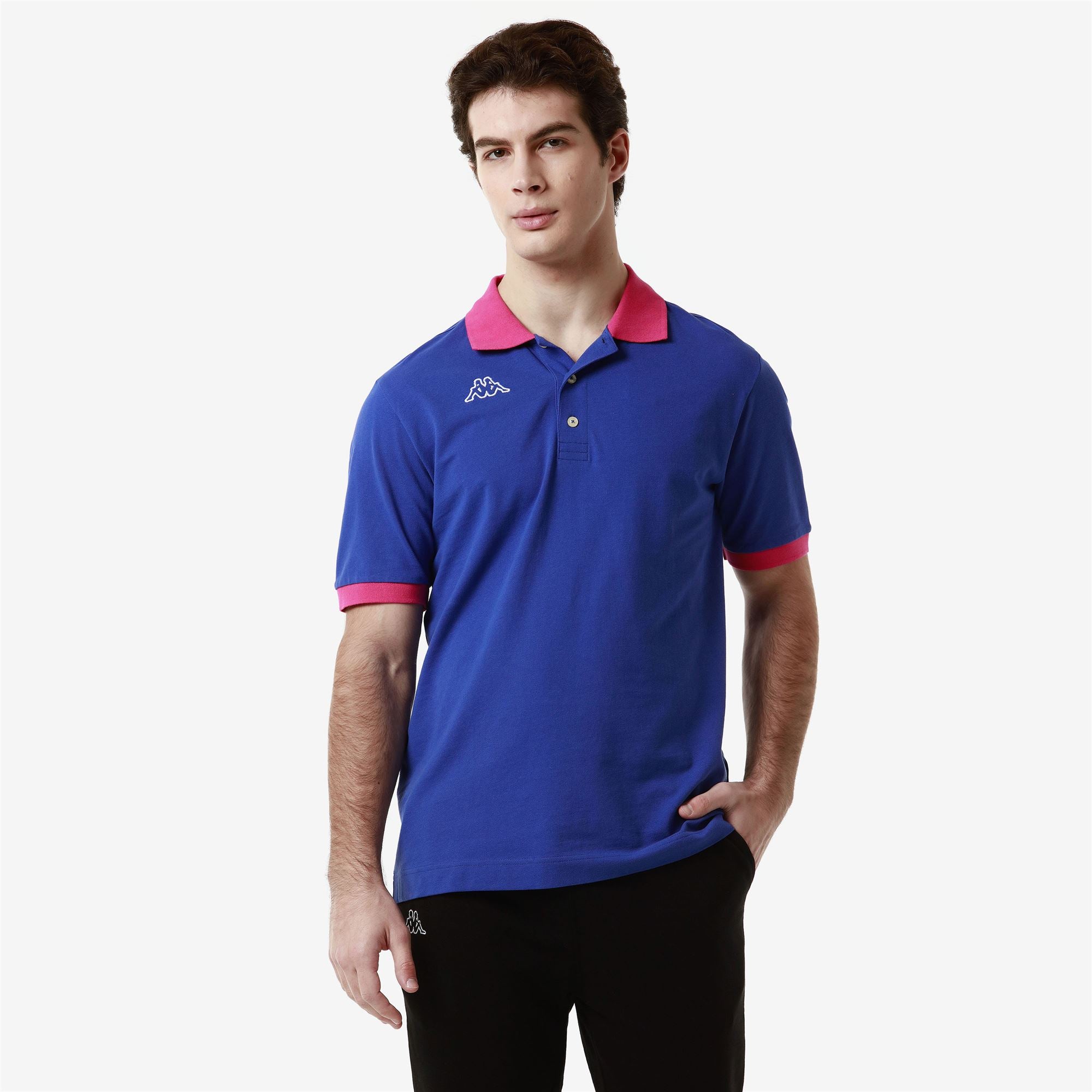 LOGO.Polo man in cotton piquet fabric.REGULAR FIT.Short sleeves. 3 personalized buttons.Flat knit rib collar and borders.Omini logo outline embroidered on chest.Kappa lettering printed on collar.