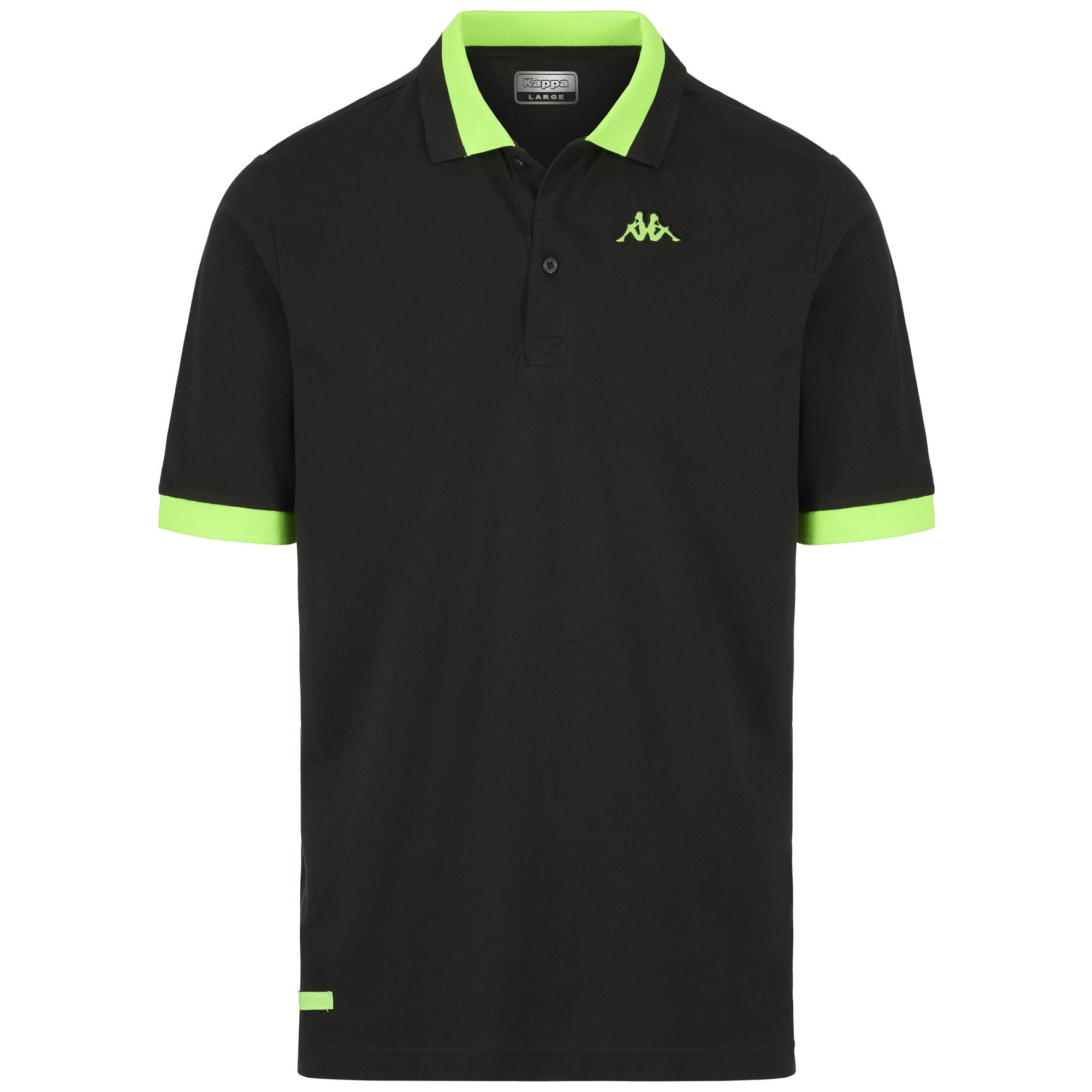 LOGO.Polo man in cotton piquet fabric.REGULAR FIT.Details and contrasting in neon color.Short sleeves. 2 personalized buttons.Flat knit polyester rib collar and borders in neon color.Tape with high density print lettering Kappa in on lower body.Omini logo embroidered on chest.