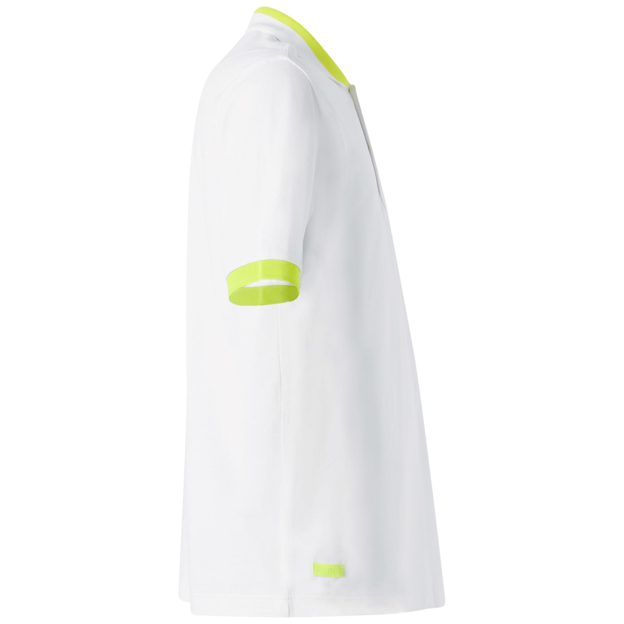 LOGO.Polo man in cotton piquet fabric.REGULAR FIT.Details and contrasting in neon color.Short sleeves. 2 personalized buttons.Flat knit polyester rib collar and borders in neon color.Tape with high density print lettering Kappa in on lower body.Omini logo embroidered on chest.