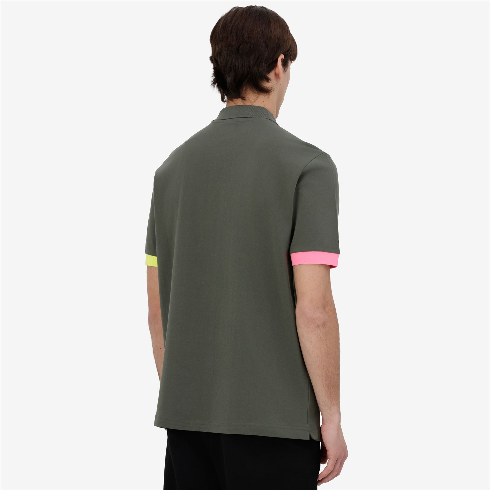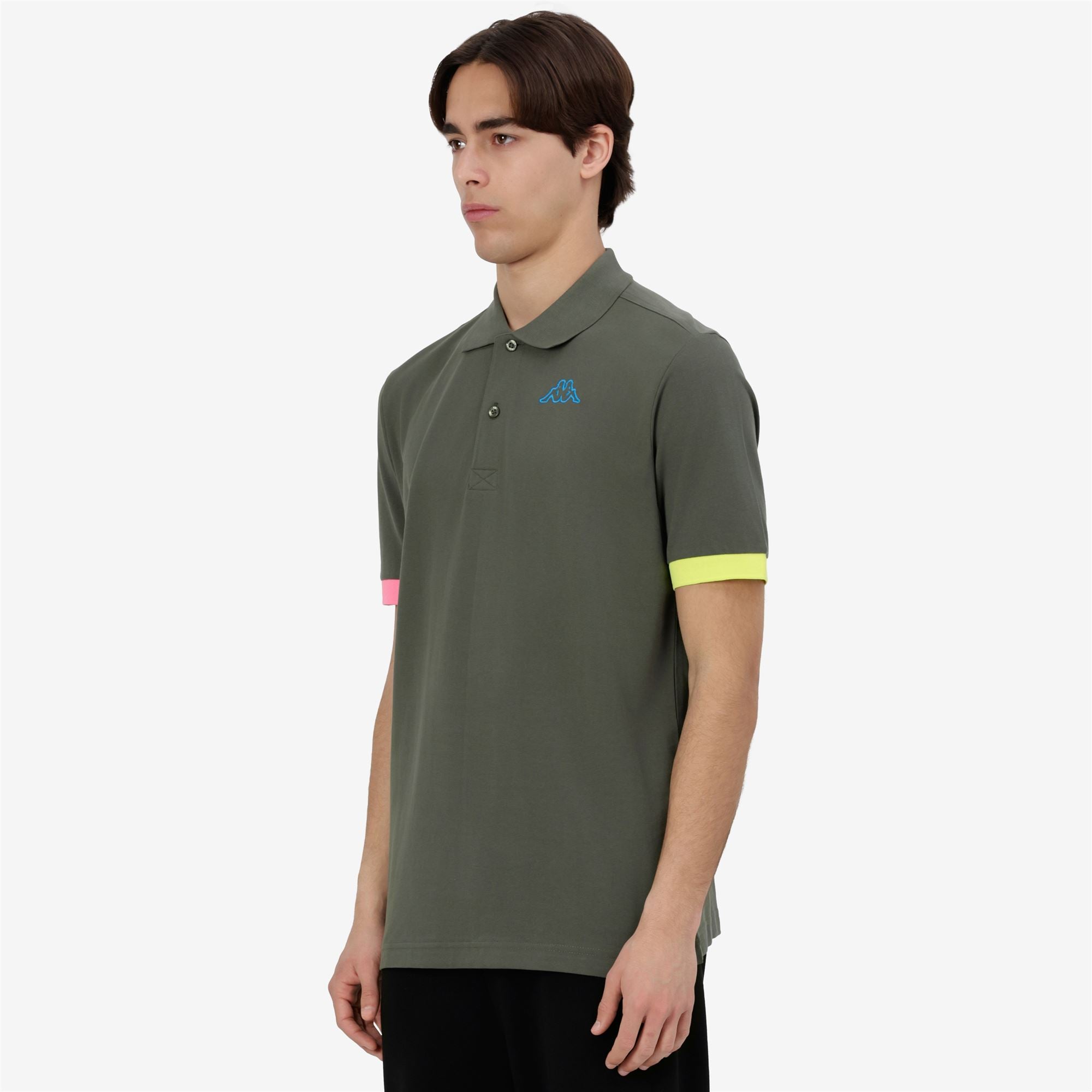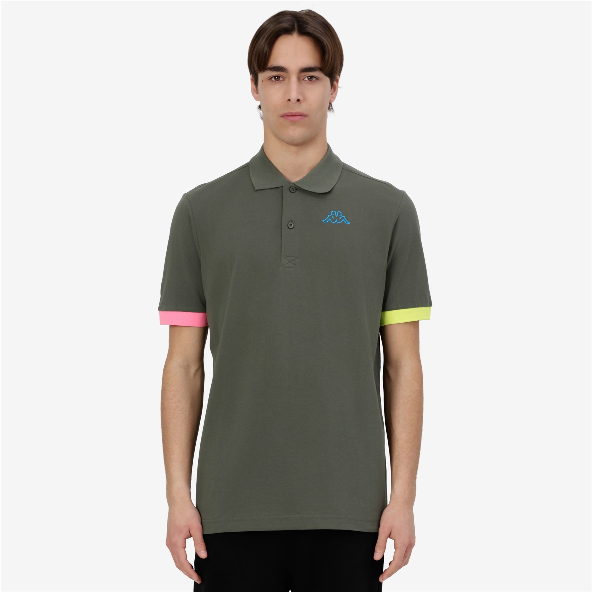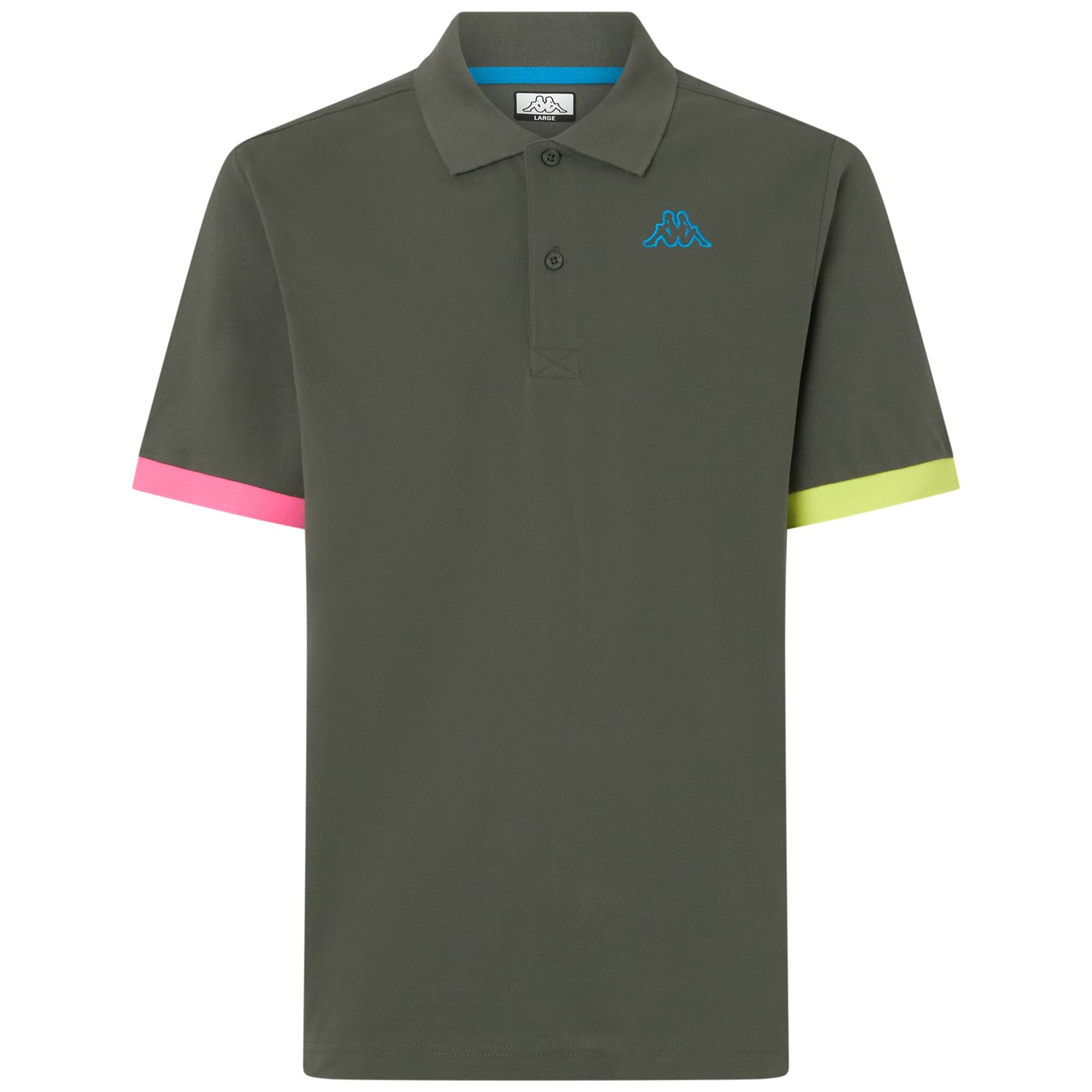 SPORT.Polo man in cotton piquet fabric.REGULAR FIT.Short sleeves. 2 personalized buttons tone in tone.Flat knit rib collar and borders sleeves in contrast colors.Necktape in contrast color.Lower splits on sides with inner chevron tape in contrast color.Omini Kappa embroidered outline on chest.
