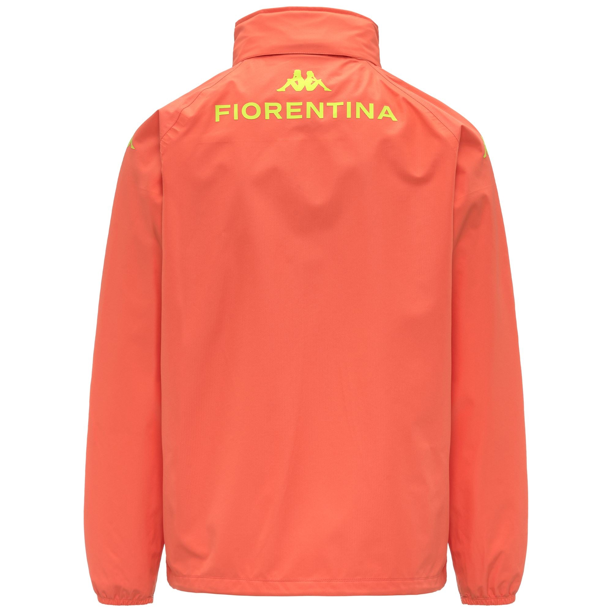 GARA.Training rain jacket for man in textured woven recycled fabric and with WATER PROTECTION technology.REGULAR FIT.Inner lining in mesh. inner collar hood. front full zip opening. pockets with zip. elasticated cuffs and elastic drawcord on bottom.Omini logo on chest. on sleeves. on back and Team Patch applied with heat transfer. Lettering on back and Sponsor on front applied with heat transfer.ACF FIORENTINA.