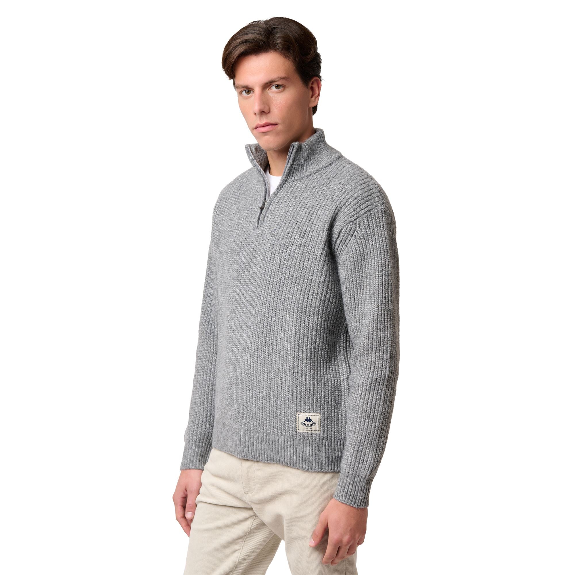 COLLEZIONE.Man half zip pulloverREGULAR FIT.MAde n soft wool blend in cardigan stitch. ribbed colalr and hem. metal zip closure.Jacquard label with Robe di Kappa personalization applied on front.