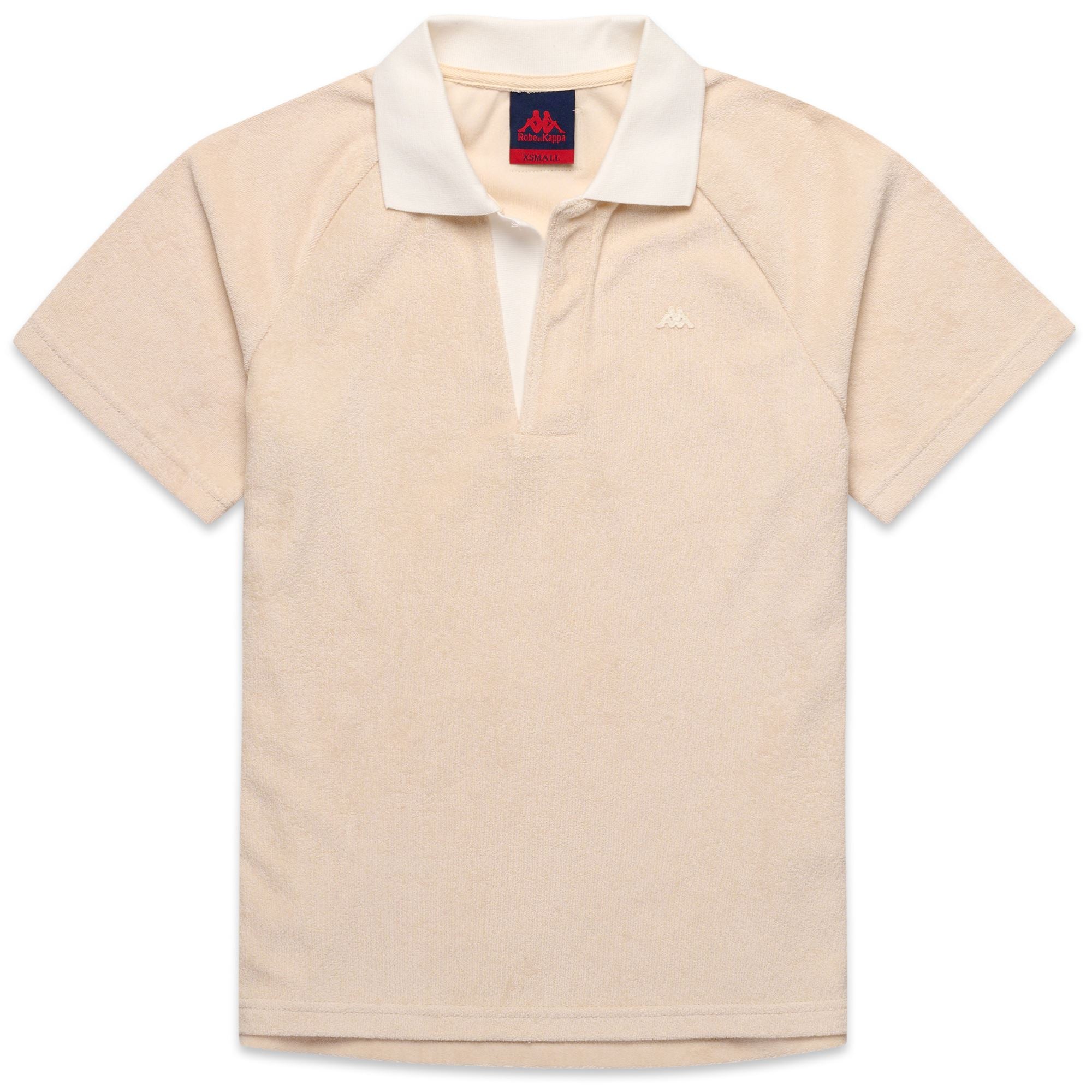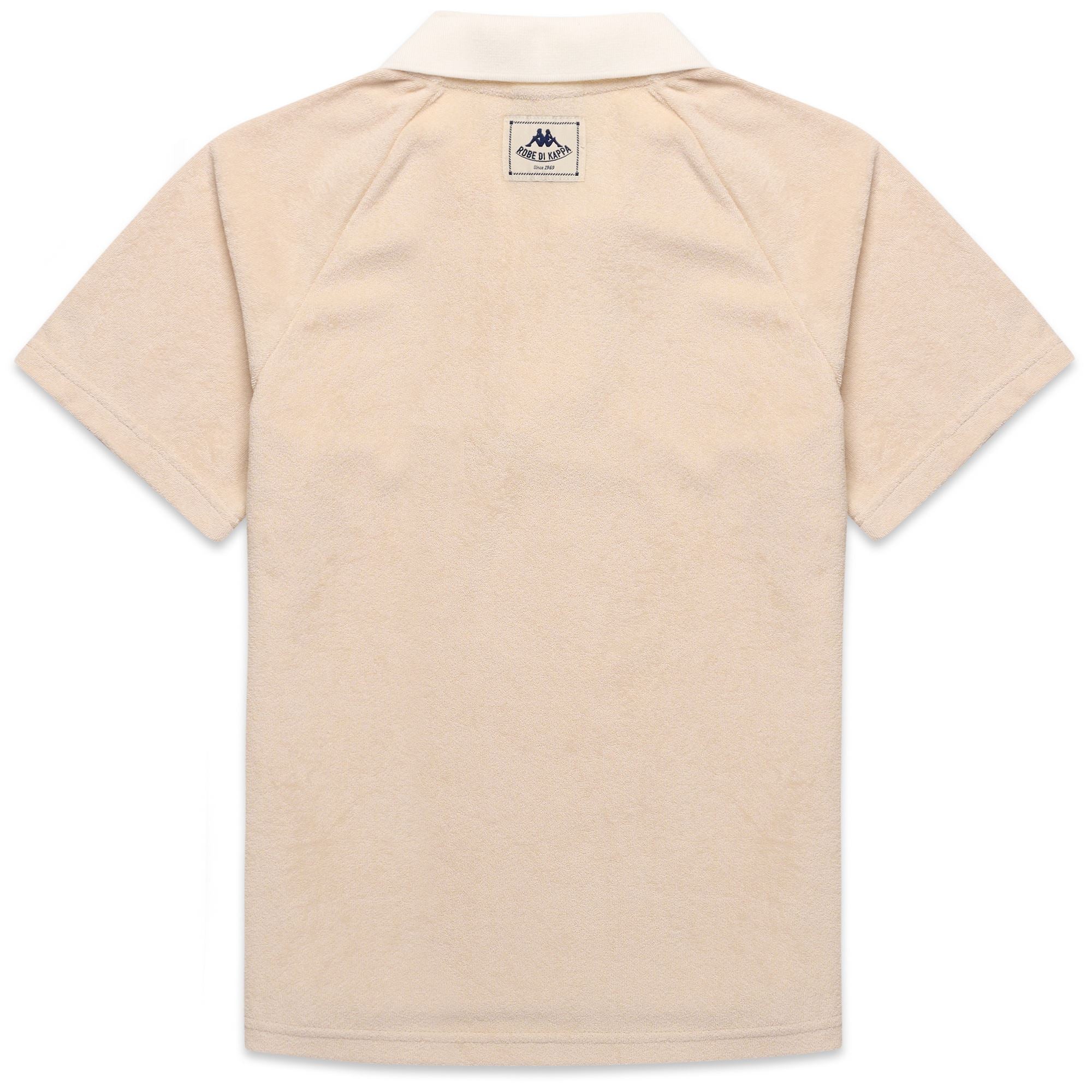 COLLEZIONE.Woman polo in towel fleece.REGULAR FIT.Short sleeve. no buttons front placket. collar and cuffs in rib.Etichetta jaquard applicata con personalizzazione Robe di Kappa and omini logo applied on chest.