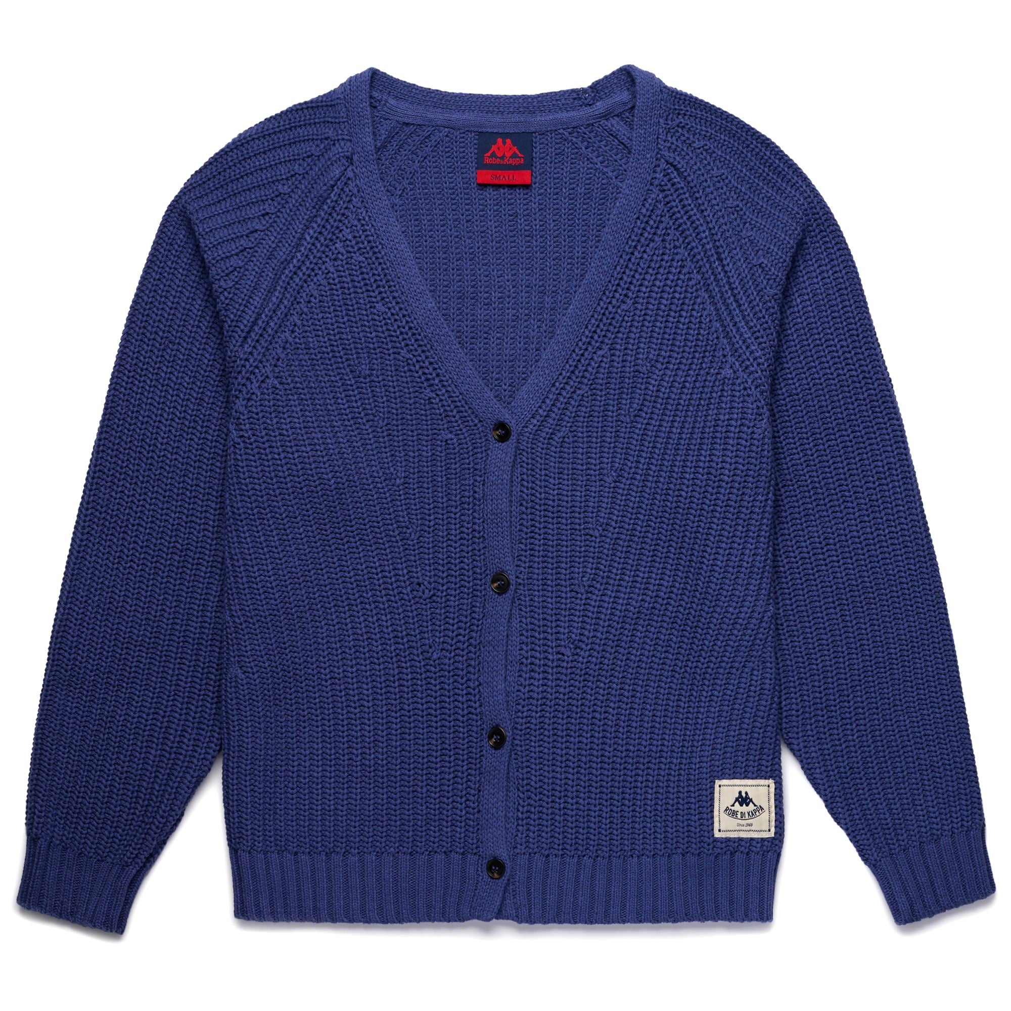 COLLEZIONE.Woman cardigan.LOOSE FIT.Made in cotton yarn with cardigan stitch. long sleeves. placket with buttonsJacquard label with Robe di Kappa customisation applied on bottom left front.