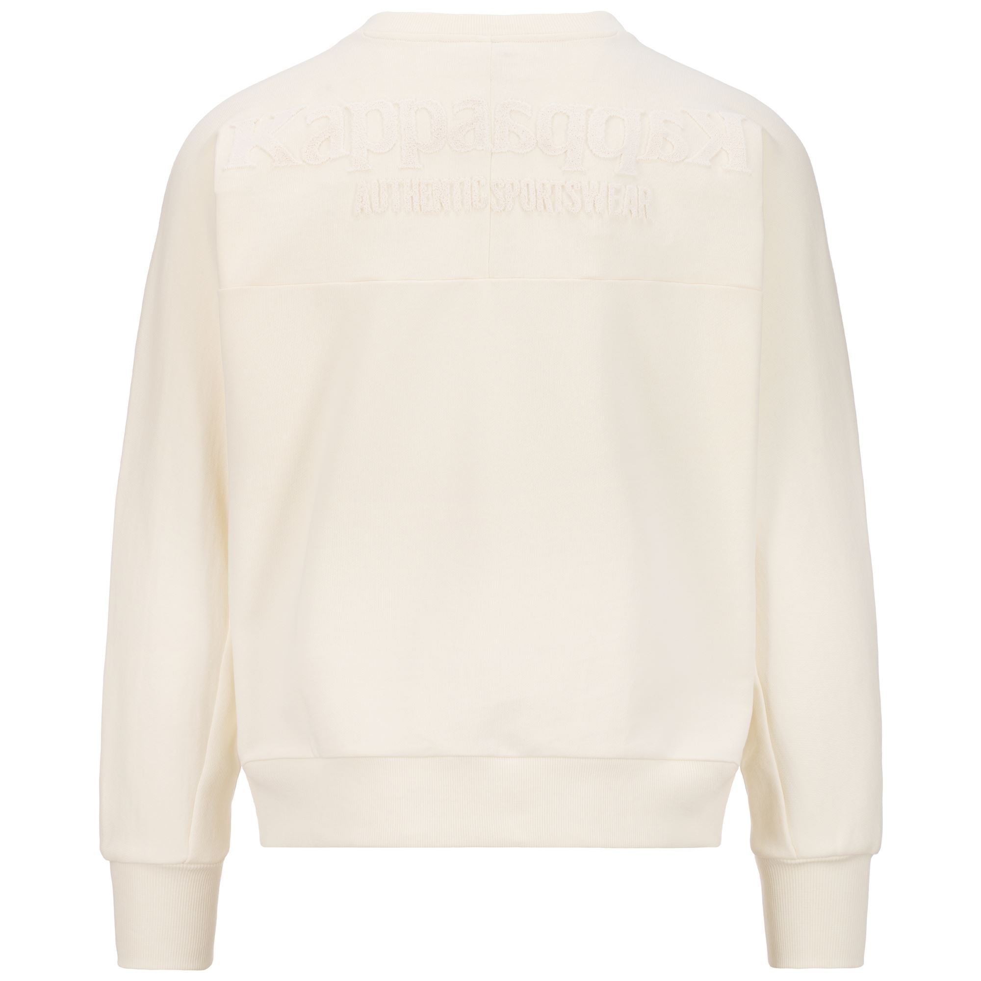 Woman crew neck fleece in french terry.OVERSIZE FIT.Embroidered Omini. carpet stitch Kappa lettering.