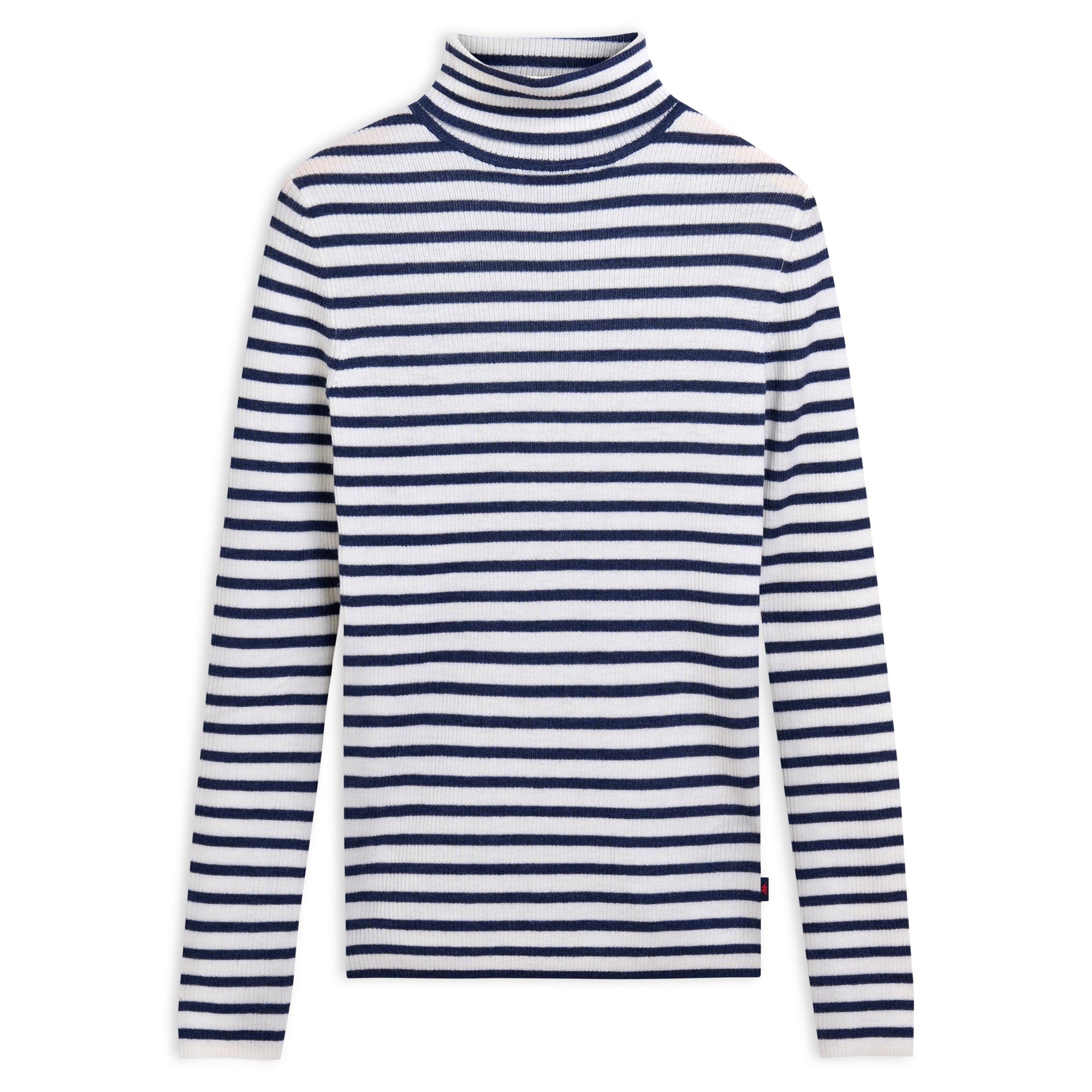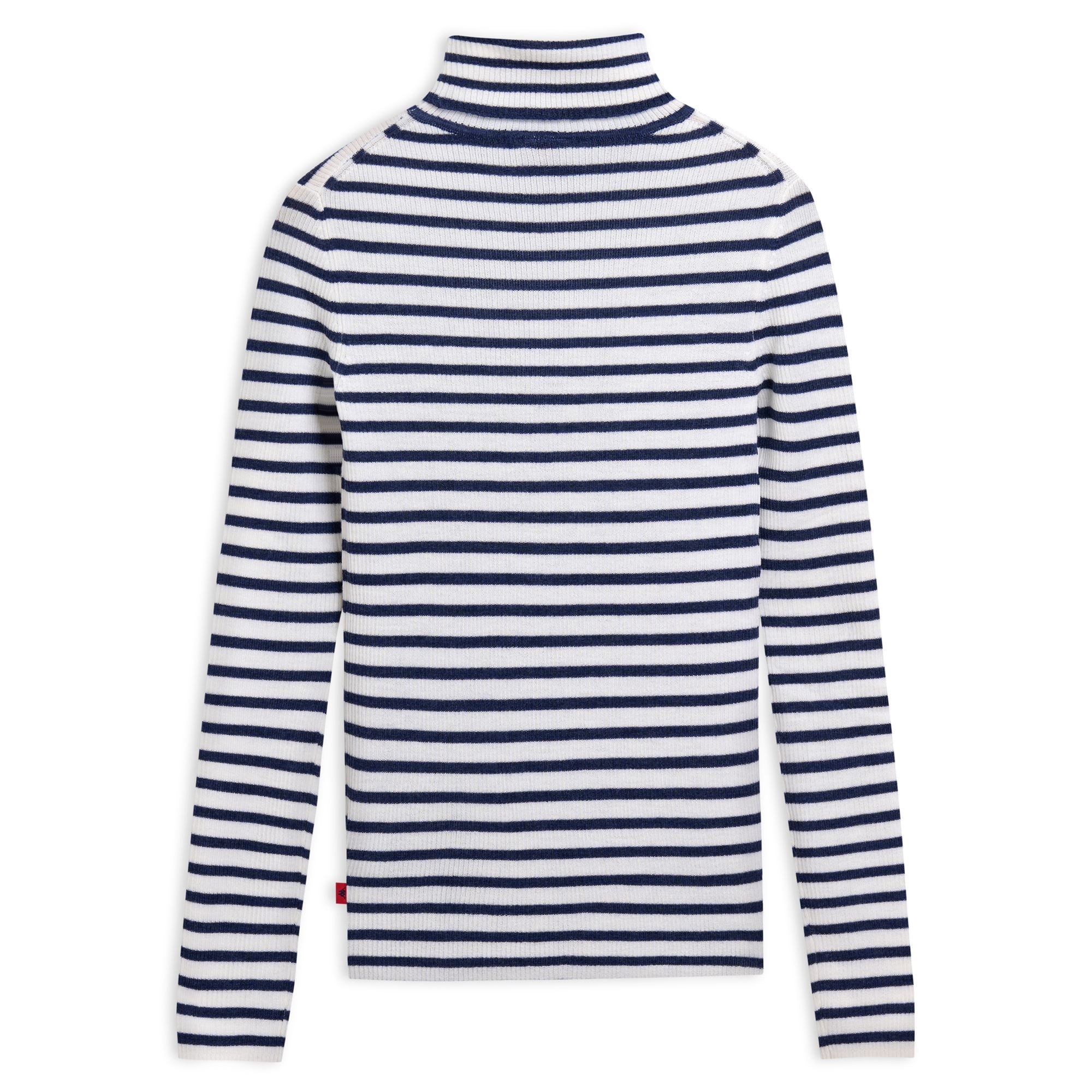 CLASSICO.Turtle neck pullover. in striped rib.SLIM FIT.Flag logo on side.
