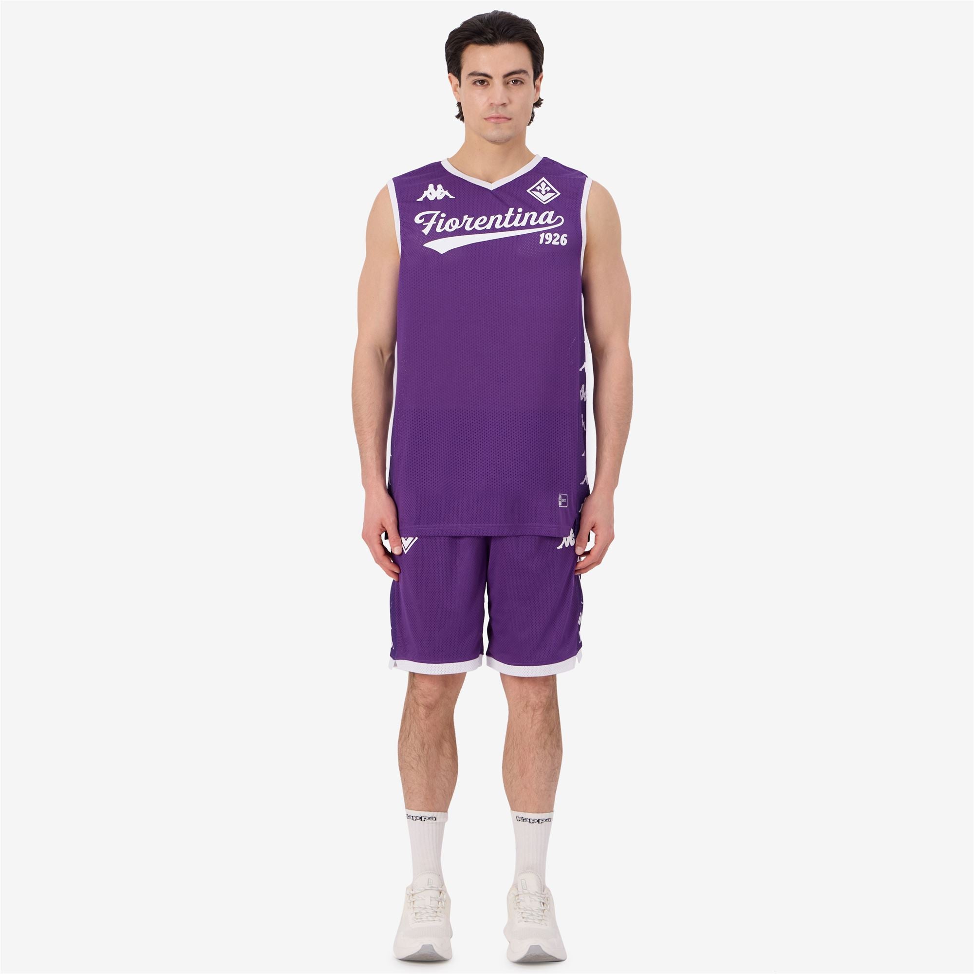 GARA. Shorts man in mesh fabric with lining in jersey fabric. REGULAR FIT. Elastic waist with coulisse. bottom inserts in contrast color and pockets on side.Omini logo and Team patch on front with heat transfer. sublimated banda Omini on sides.ACF FIORENTINA.