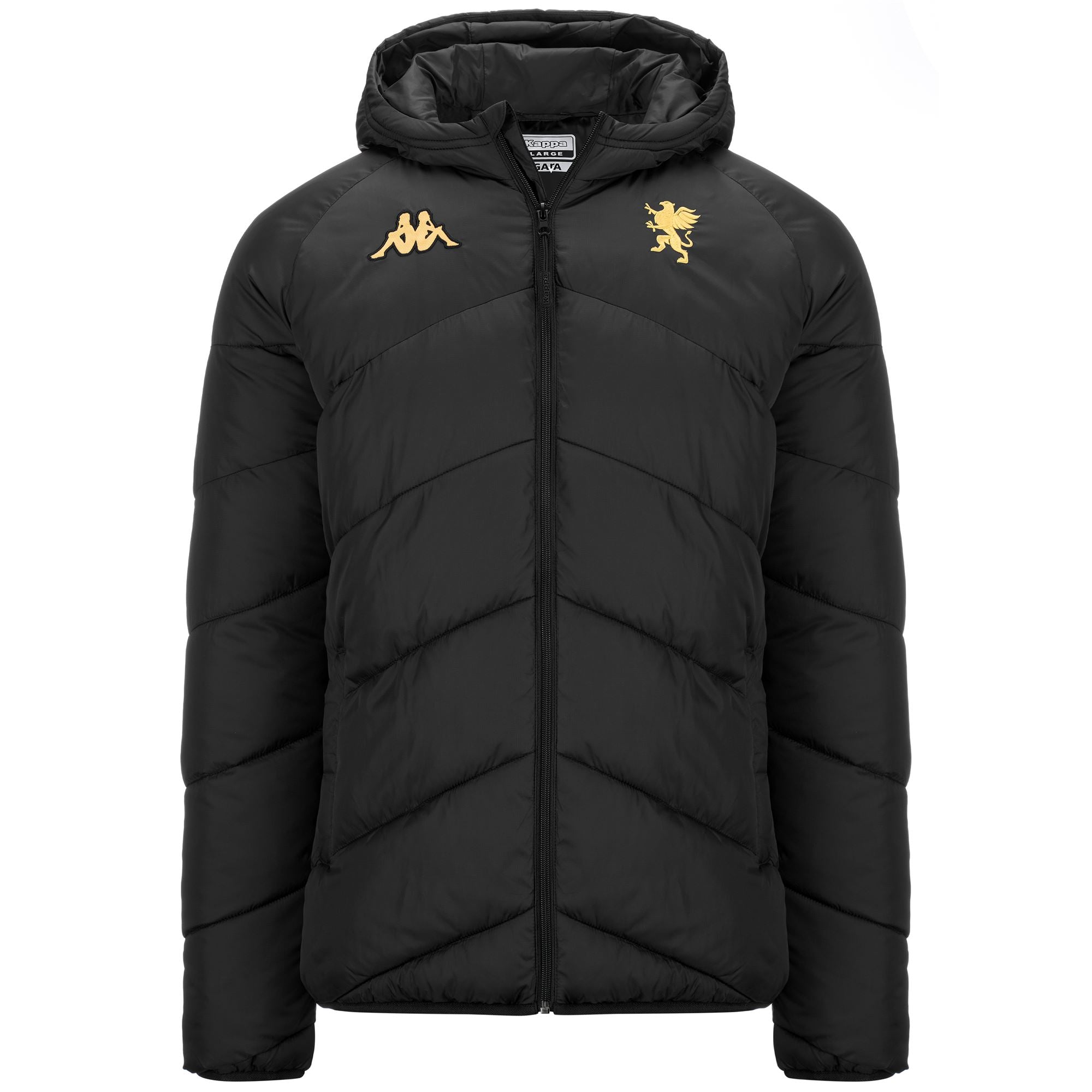 GARA.Padded hooded jacket for man in water repellent poplin fabric.SLIM FIT.Front full zip opening. pockets with zip. elasticated cuffs. insert on front. on back and on sleeves.Omini logo and Team logo on front emboridered. gabardine lettering on back applied with emby.GENOA FC.